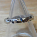 全体に深く彫りこみを入れた表面により、光の輝きがきれいなリングにサファイアを2個セット。