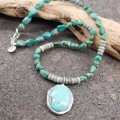 ターコイズとシルバーのペンダントトップにターコイズビーズを