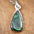 深い緑色に独特な模様が特徴的なマラカイトに合わせて、
